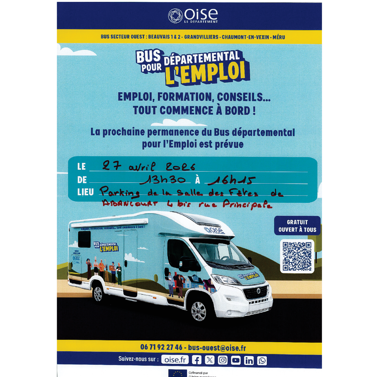 Renseignements au 06 71 92 27 46 ou bus-emploi@oise.fr